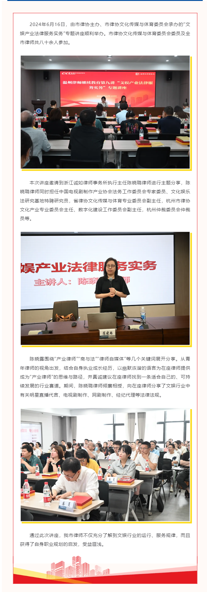 市律协成功举办2024年温州律师继续教育第九讲《文娱产业法律服务实务》专题讲座