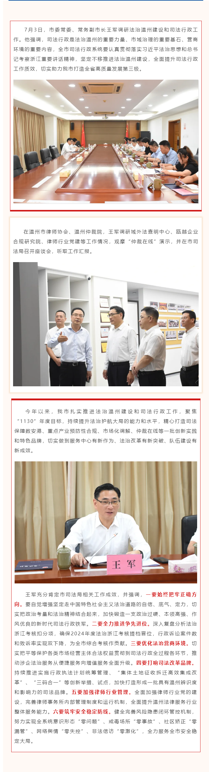 王军常务副市长调研法治温州建设和司法行政工作