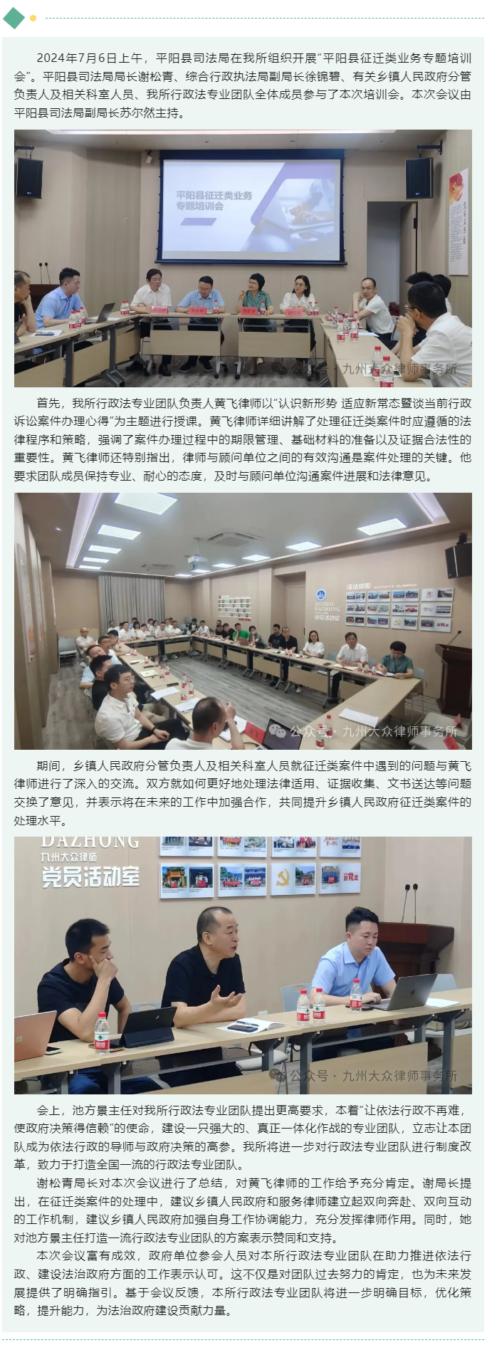 平阳县司法局在九州大众所组织开展“平阳县征迁类业务专题培训会”