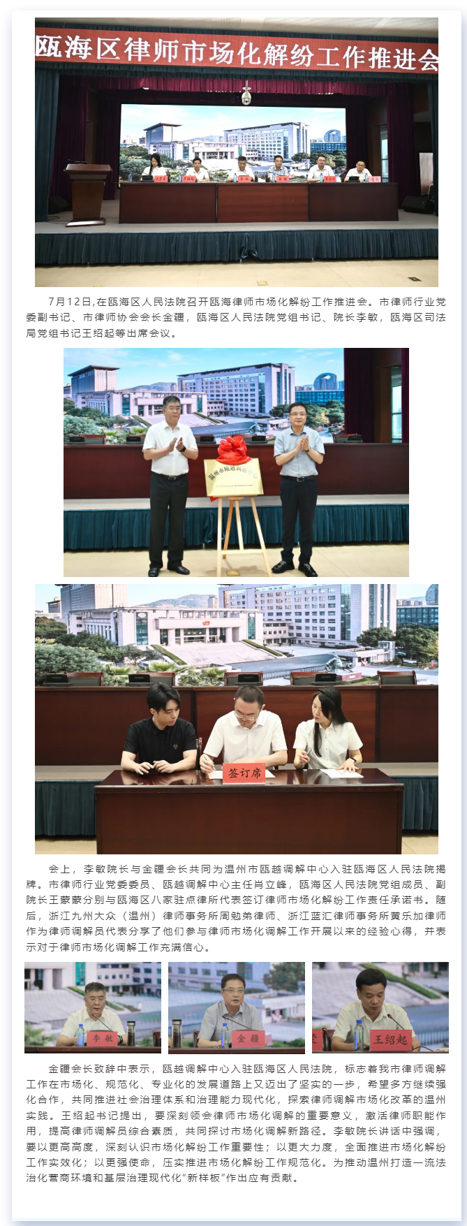 “温州市瓯越调解中心”入驻瓯海区人民法院