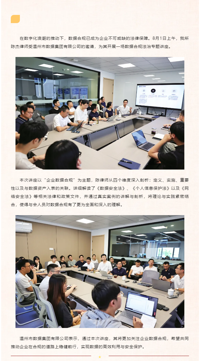 “建设数据合规 法治护航企业”——光正大所陈杰律师受数据集团邀请开展法治专题讲座