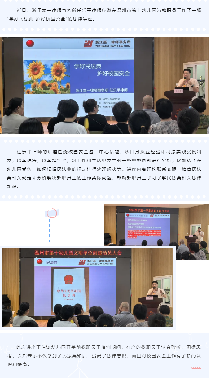 嘉一所任乐平律师应邀为温州十幼教职员工开展校园安全法律讲座