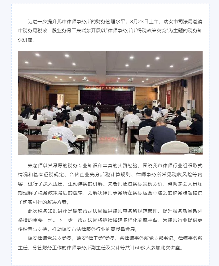 震瓯所杨秀玉律师开展《不良资产处置中税收风险识别和防范》专题授课