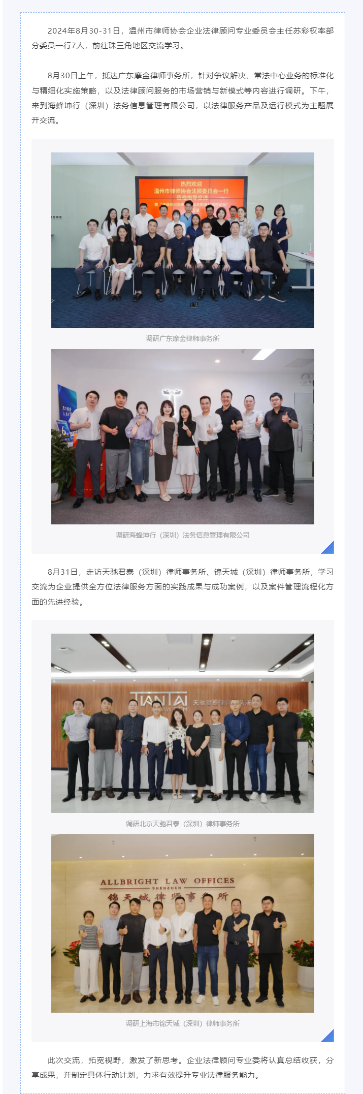 市律协企业法律顾问专业委赴珠三角地区律师事务所交流