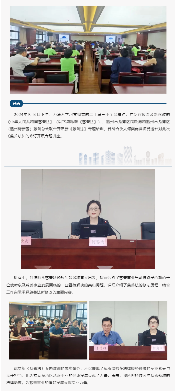 震瓯所何奕南律师受邀开展新《慈善法》专题讲座