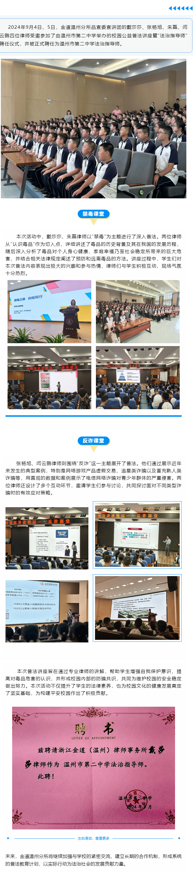 金道温州分所律师受聘担任温州市第二中学法治指导师并开展校园公益普法讲座