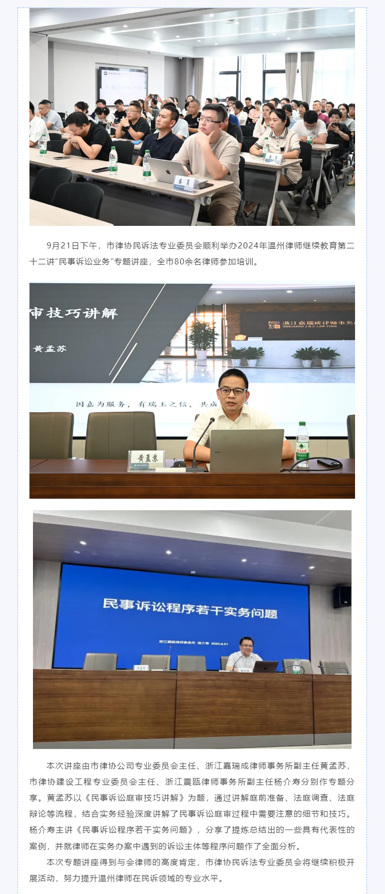 温州律协举办2024年继续教育第二十二讲“民事诉讼业务”专题讲座