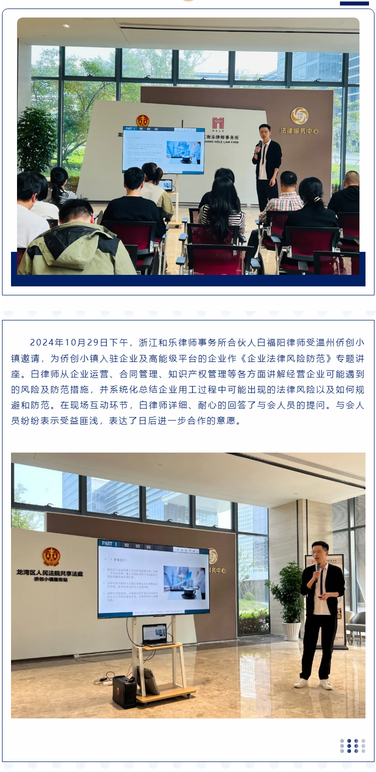 和乐律所白福阳律师受邀开展《企业法律风险防范》专题讲座