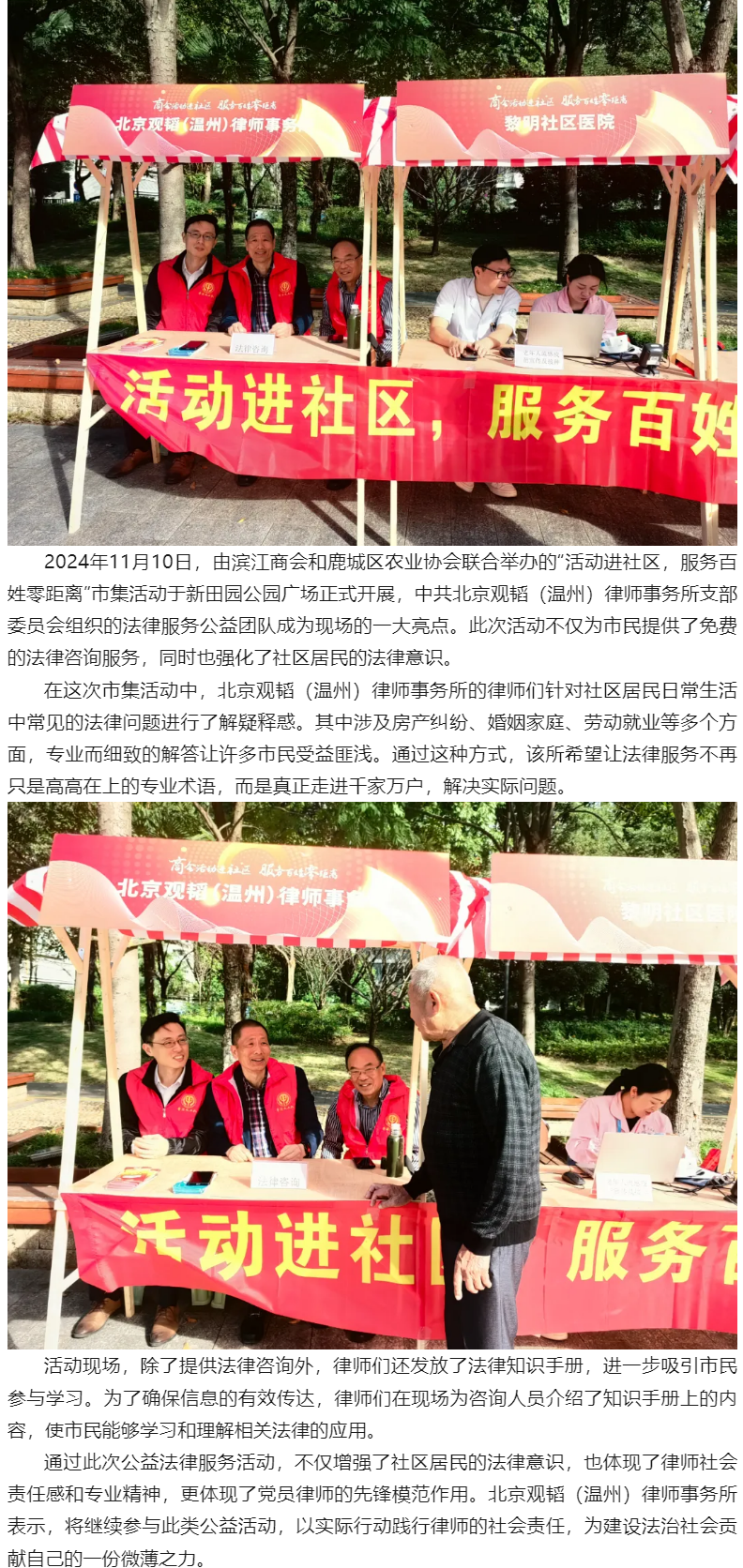 北京观韬(温州)律师事务所公益团队助力社区法律服务