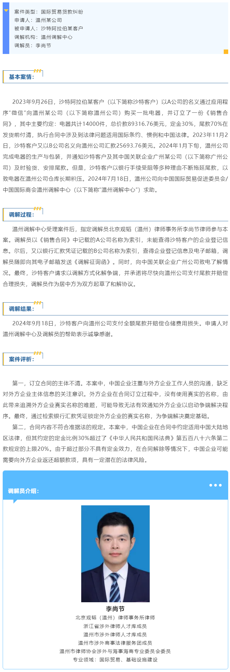 外方不明且欠款 查实主体促履行——我市律师成功调解一起国际贸易货款纠纷