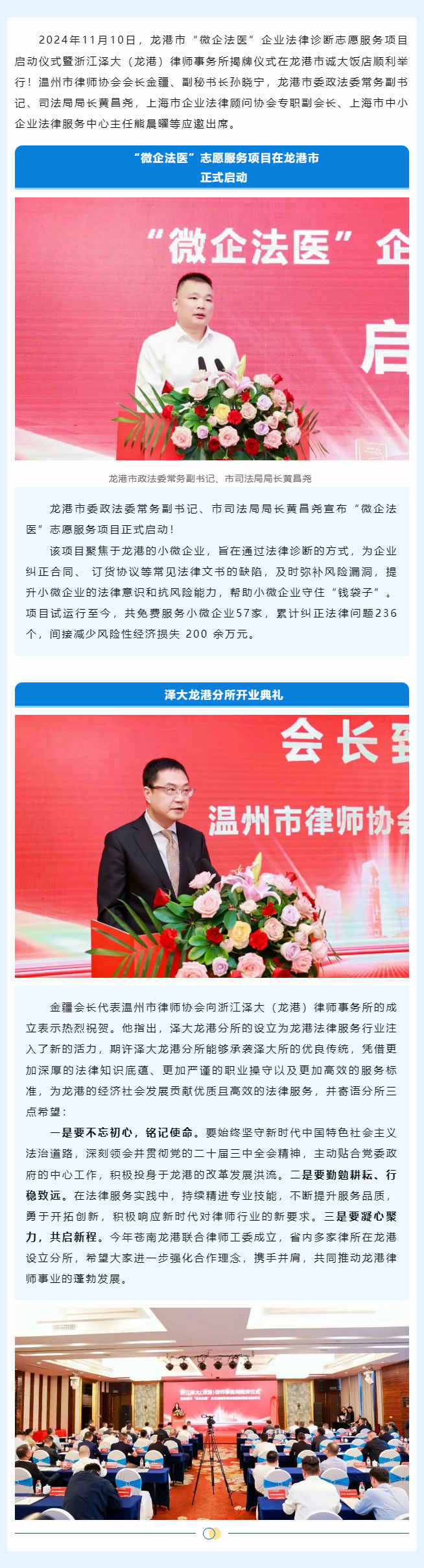 同心同行 聚力前行—龙港市“微企法医”企业法律诊断志愿服务项目启动仪式暨浙江泽大(龙港)律师事务所揭牌仪式圆满举行