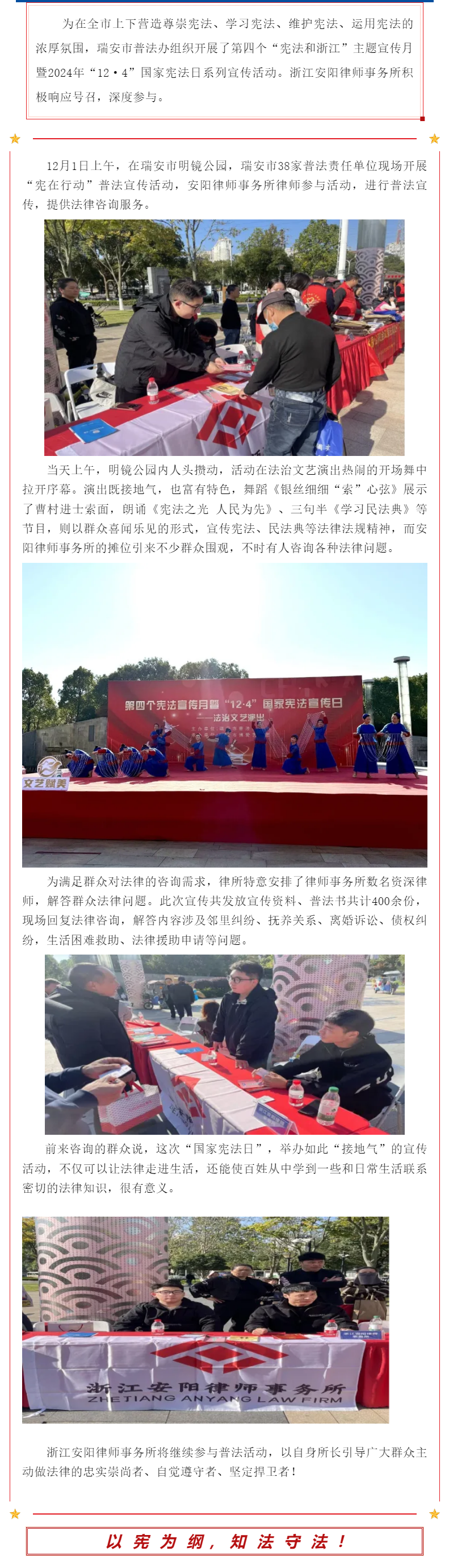 与宪法同行,助力普法宣传!浙江安阳律师事务所参加“12·4”国家宪法日活动!
