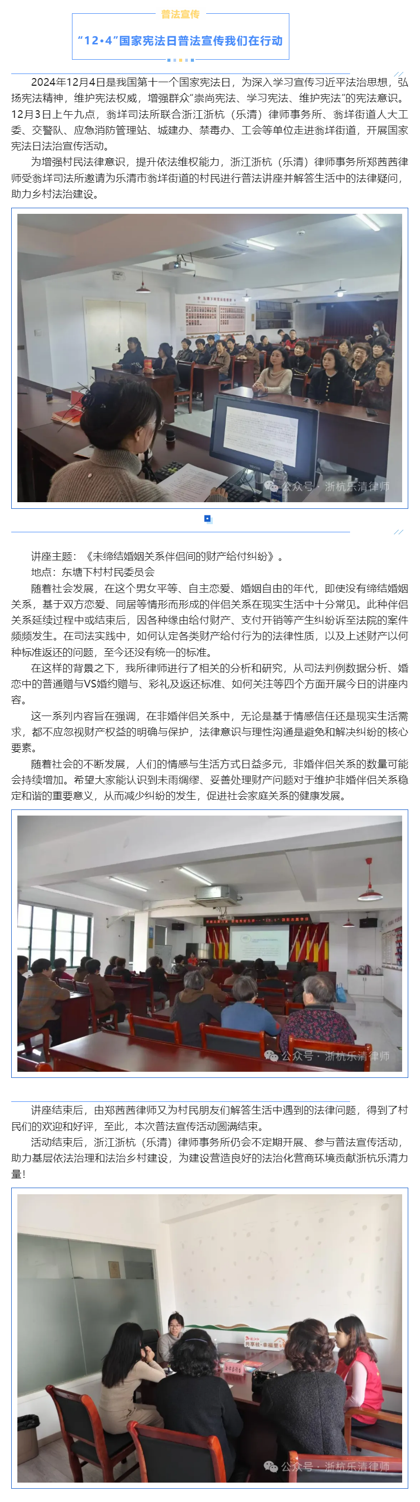 浙杭乐清所郑茜茜律师积极参与“12·4”国家宪法日普法宣传
