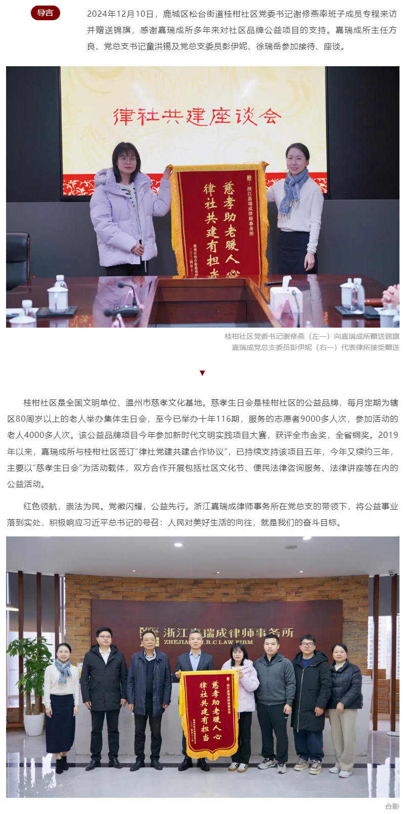 律社共建 慈孝助老:嘉瑞成获赠锦旗