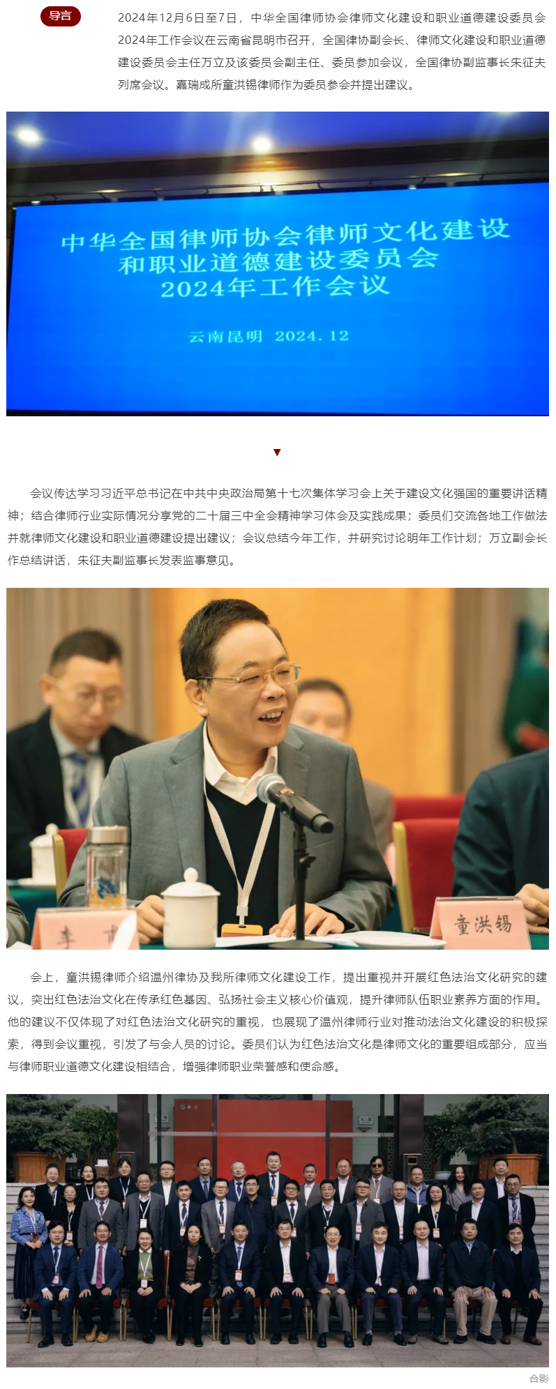 嘉瑞成所童洪锡律师参加全国律师文化委工作会议并提出建议