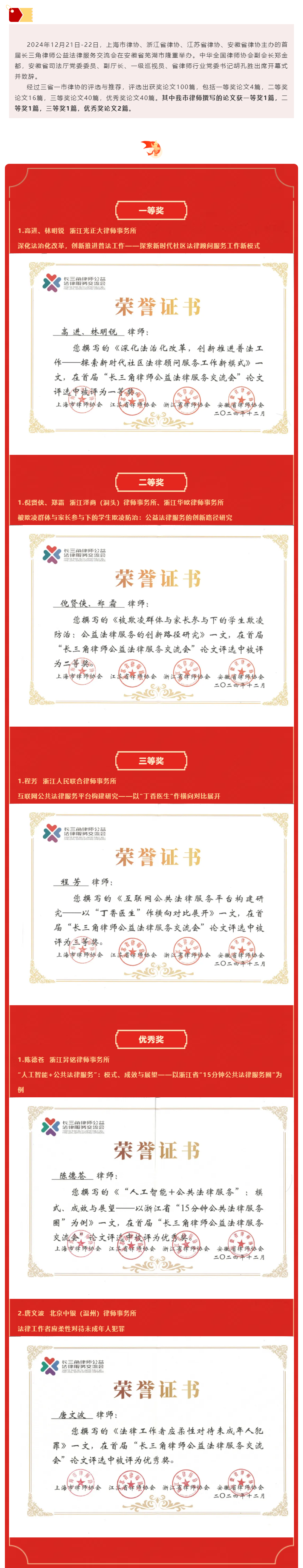 我市律师在首届长三角律师公益法律服务交流会论文征文中创佳绩