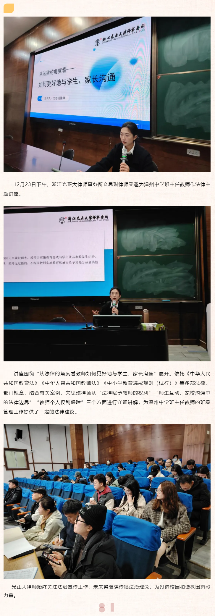 光正大所文思琪律师为温州中学教师作法律主题讲座