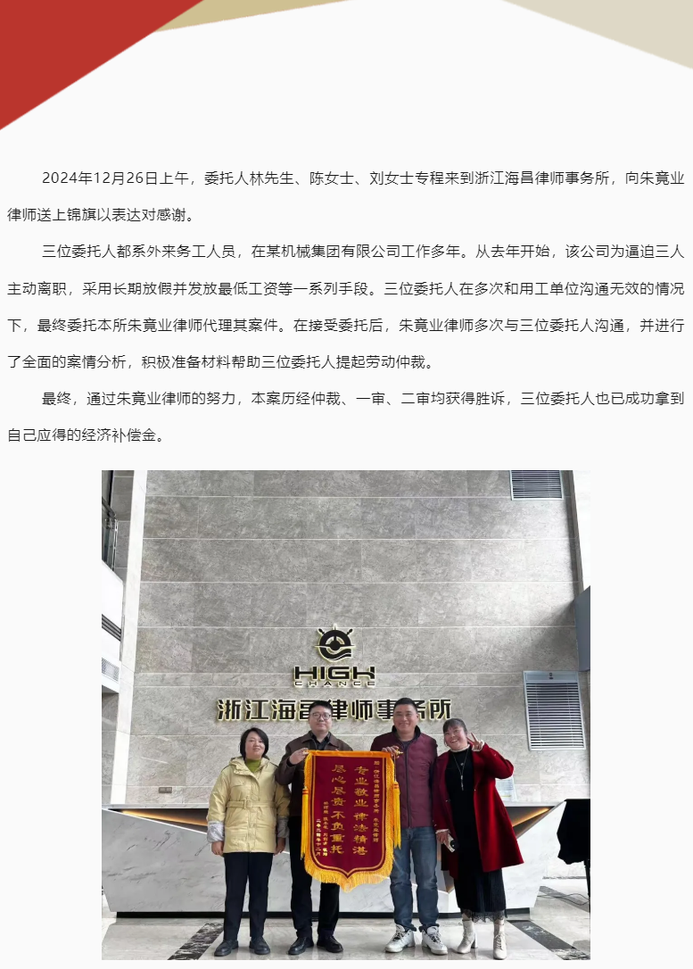 专业敬业 尽心尽责——海昌所朱竟业律师获委托人赠送锦旗