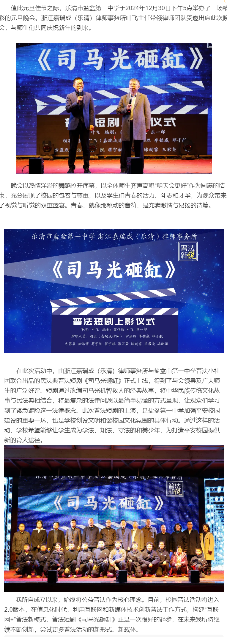 嘉瑞成乐清所联合出品的民法典之《司马光砸缸》普法短剧正式上线!