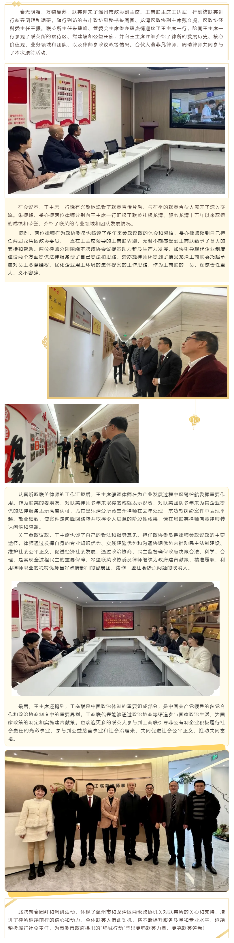 温州市政协副主席、工商联主席王达武一行莅临联英所开展新春慰问和调研