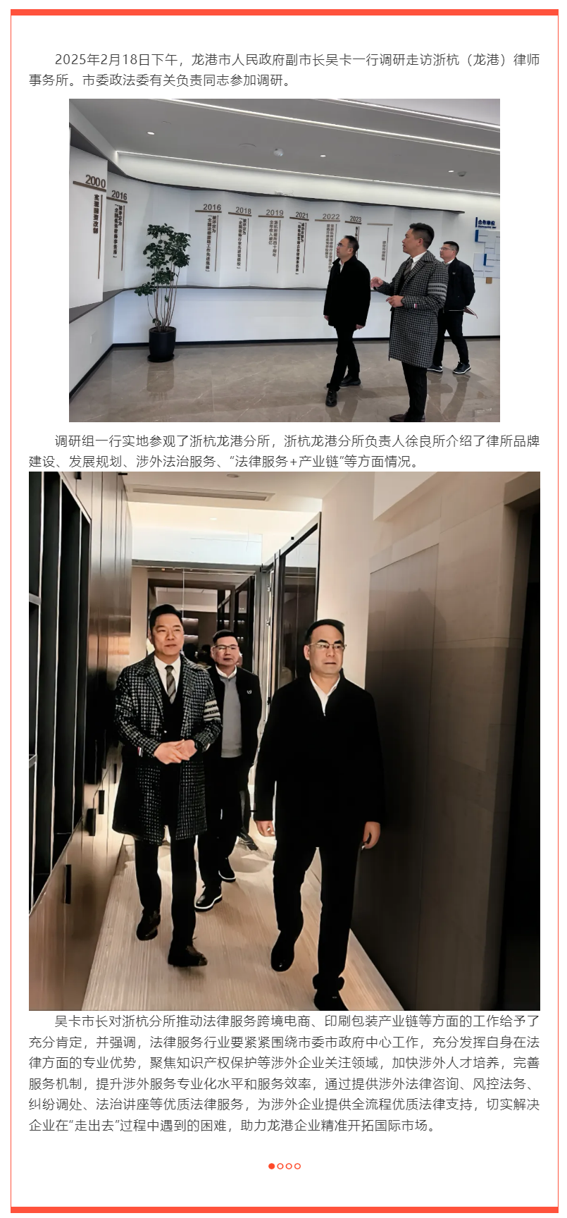 龙港市副市长吴卡一行调研走访浙杭(龙港)律师事务所