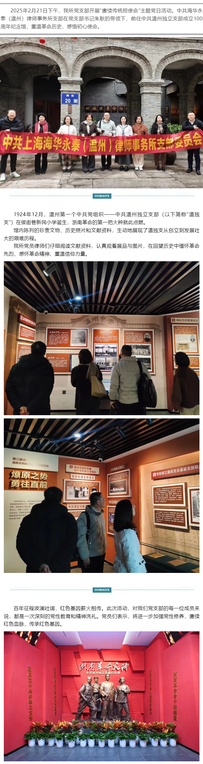 海华永泰温州所党支部开展“赓续传统担使命”主题党日活动