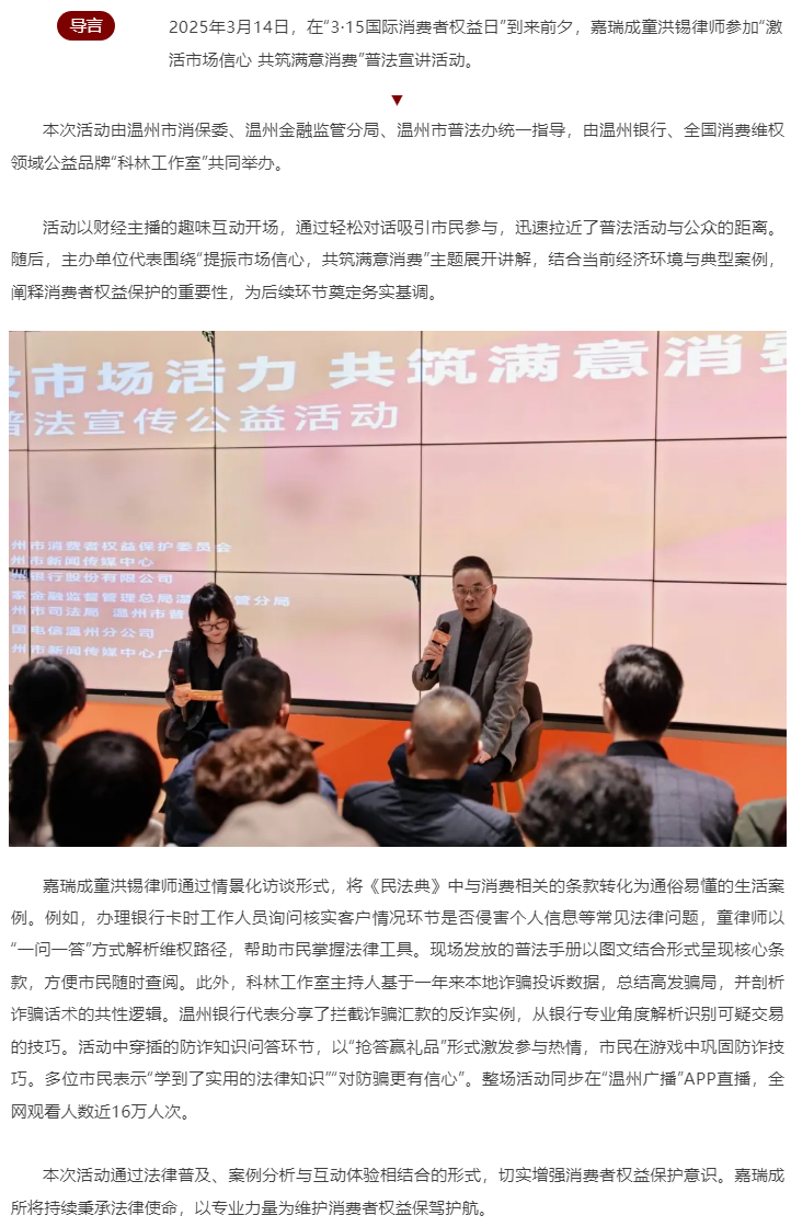嘉瑞成所童洪锡律师参加金融消费维权活动