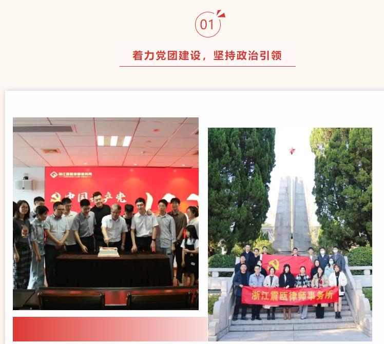 震瓯所注重加强青年律师的学习能力建设,坚持党建带动团建,充分发挥团组织的作用,调动青年律师的积极性、主动性和创造性。并把团建工作纳入党建工作的统一规划部署之中,发挥党建工作统领作用,统一思想、激发动力,让青年律师深入参与到律所中心工作之中,为青年律师创造更大平台,提供更多机遇。组建“红领团队”,在法律服务中全体成员以红色精神为傲,共同努力,奋力前行,积极参与法律援助、投身社会公益事业。