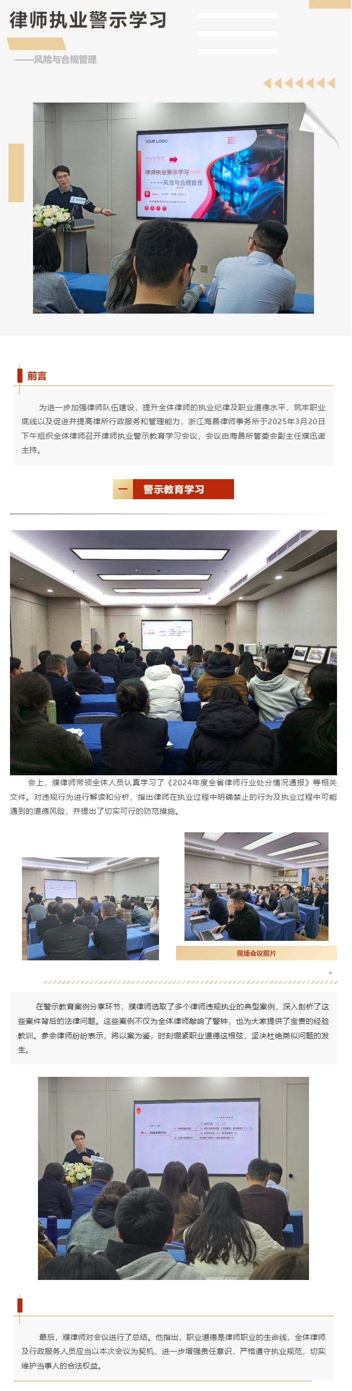 海昌所组织全体律师召开律师执业警示教育学习会议
