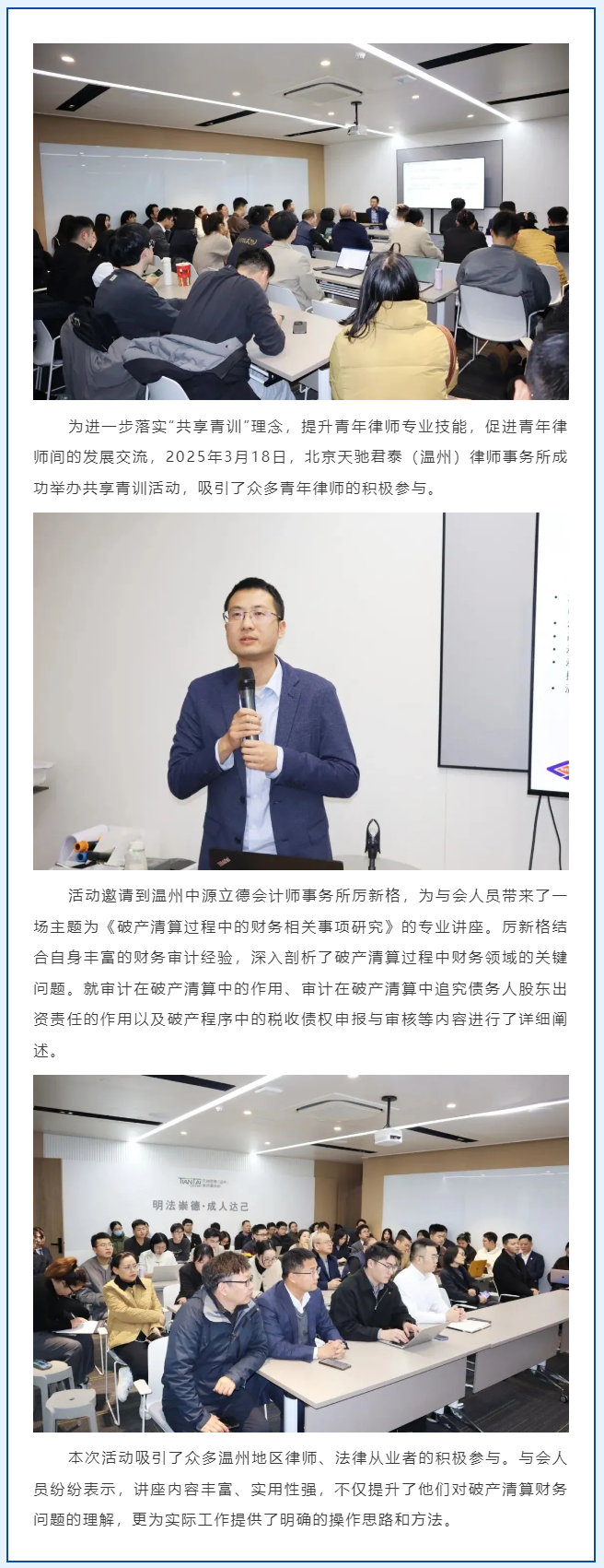 北京天驰君泰(温州)律师事务所“共享青训”活动成功举办