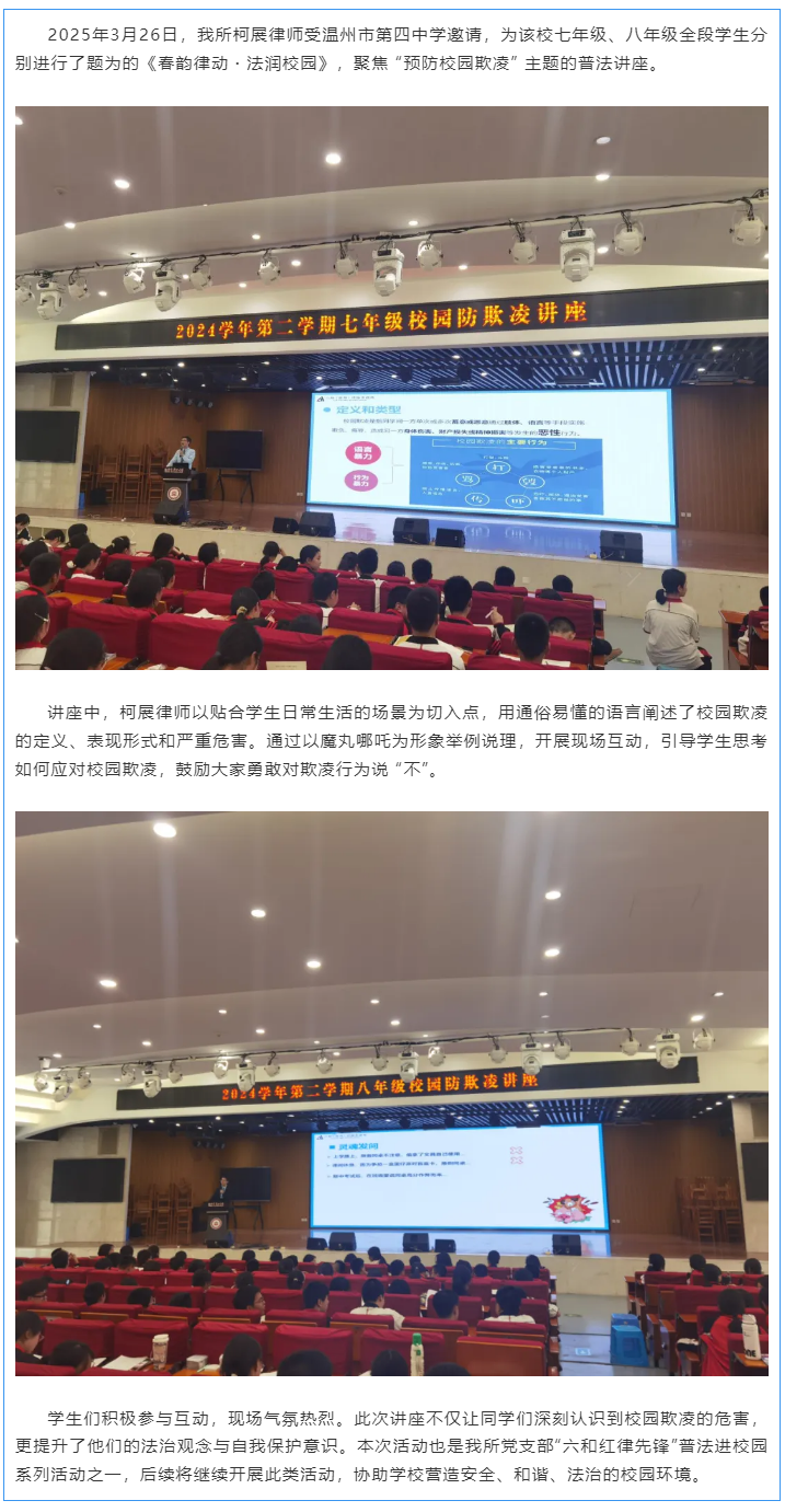 六和温州所柯展律师为温州四中学生开展校园普法讲座