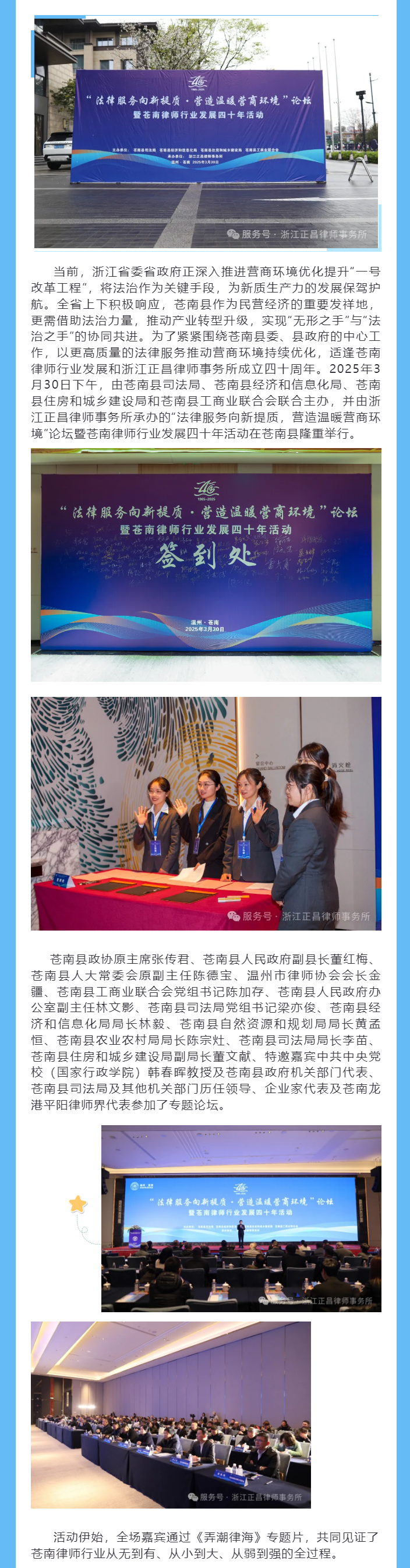 “法律服务向新提质,营造温暖营商环境”论坛暨苍南律师行业发展四十年活动圆满举行