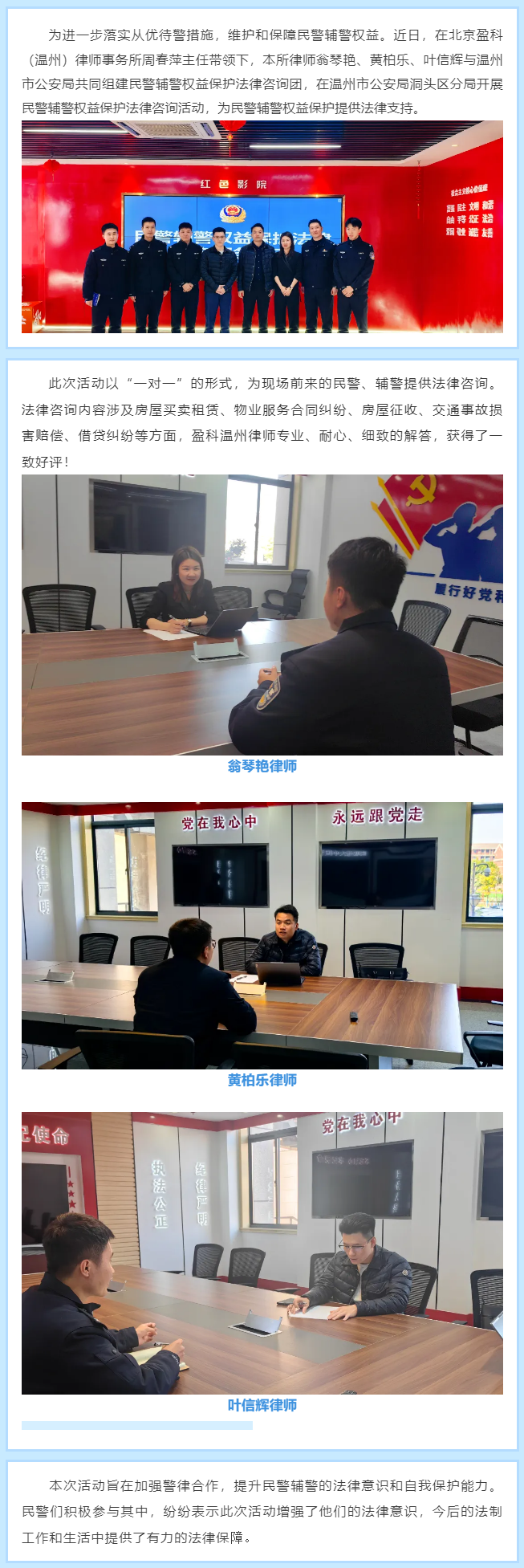 盈科温州律师应邀在温州市公安局洞头区分局开展民警辅警权益保护法律咨询活动