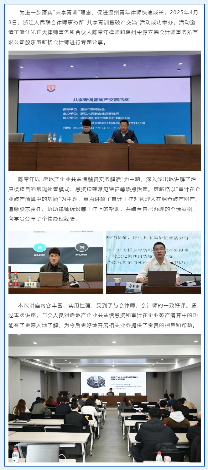 浙江人民联合律师事务所“共享青训暨破产交流”活动成功举办