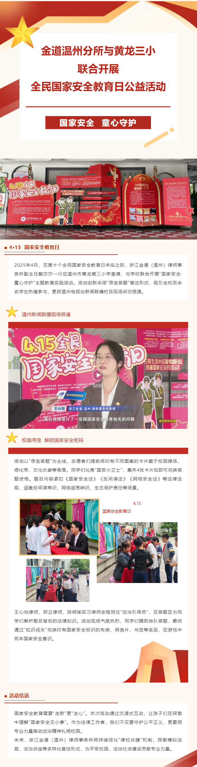 金道温州分所4·15全民国家安全教育日公益活动获温州新闻联播报道