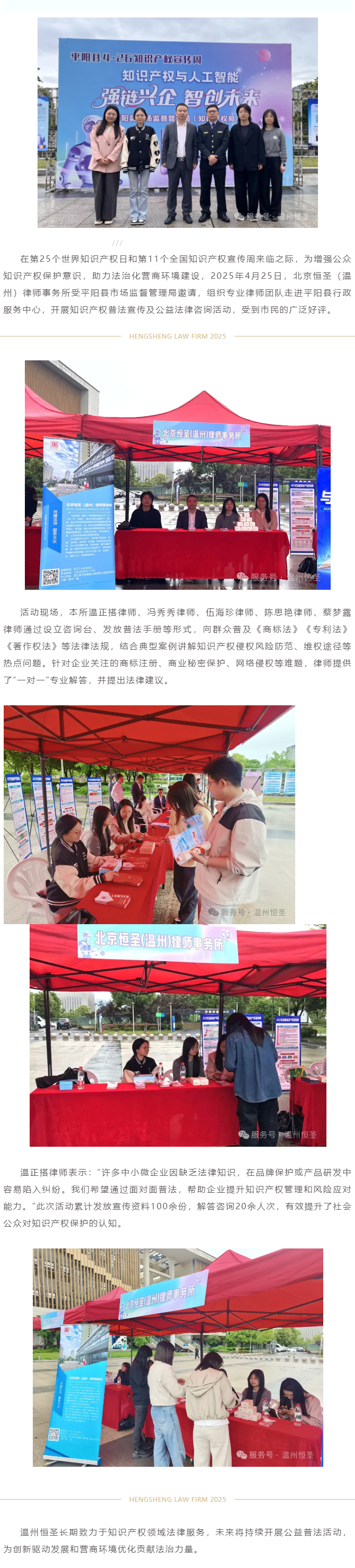 温州恒圣所律师开展“全国知识产权周”普法宣传活动