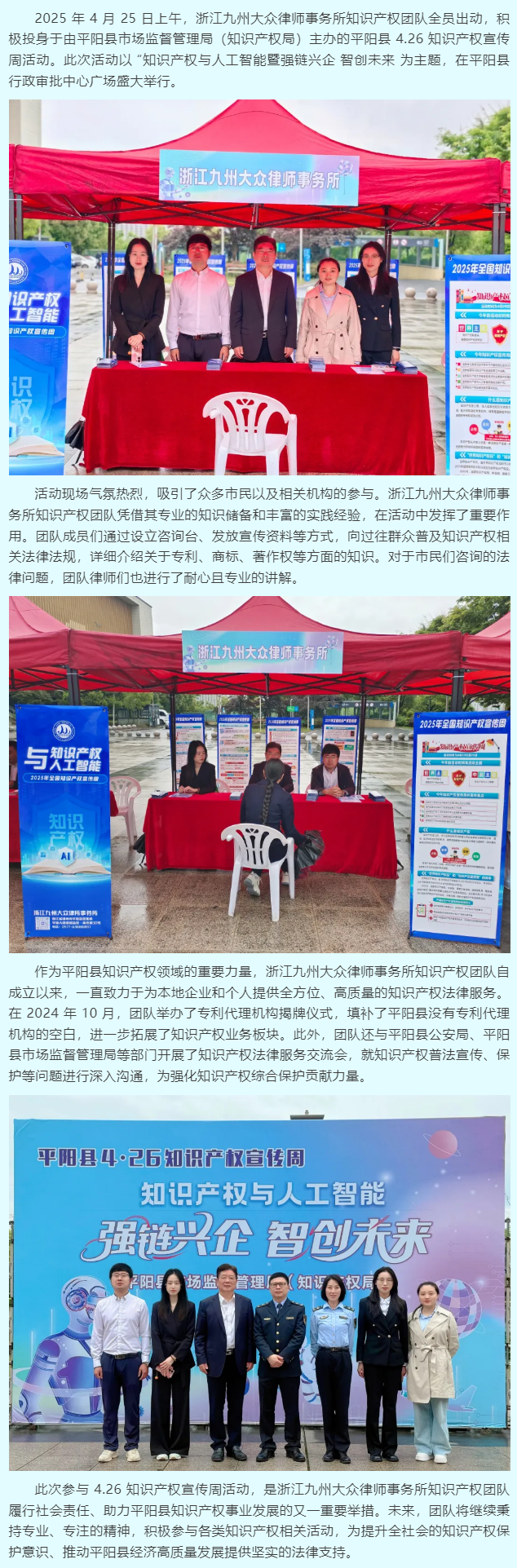 九州大众所知识产权团队积极参与平阳县 4.26 知识产权宣传周活动
