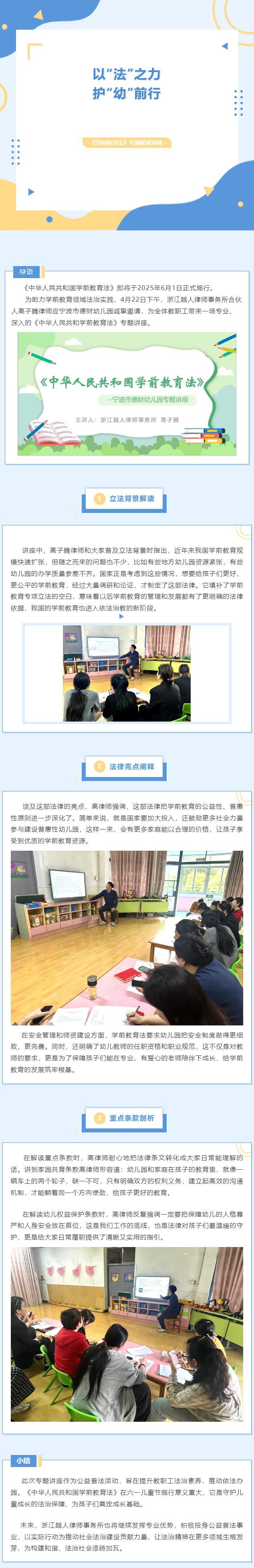 越人所高子腾律师受邀为宁波市德财幼儿园开展《学前教育法》专题讲座