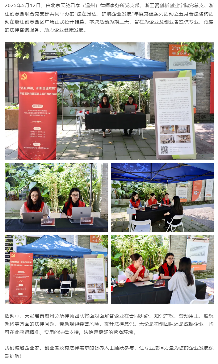 “法在身边,护航企业发展”天驰君泰温州所五月普法咨询活动正式启动
