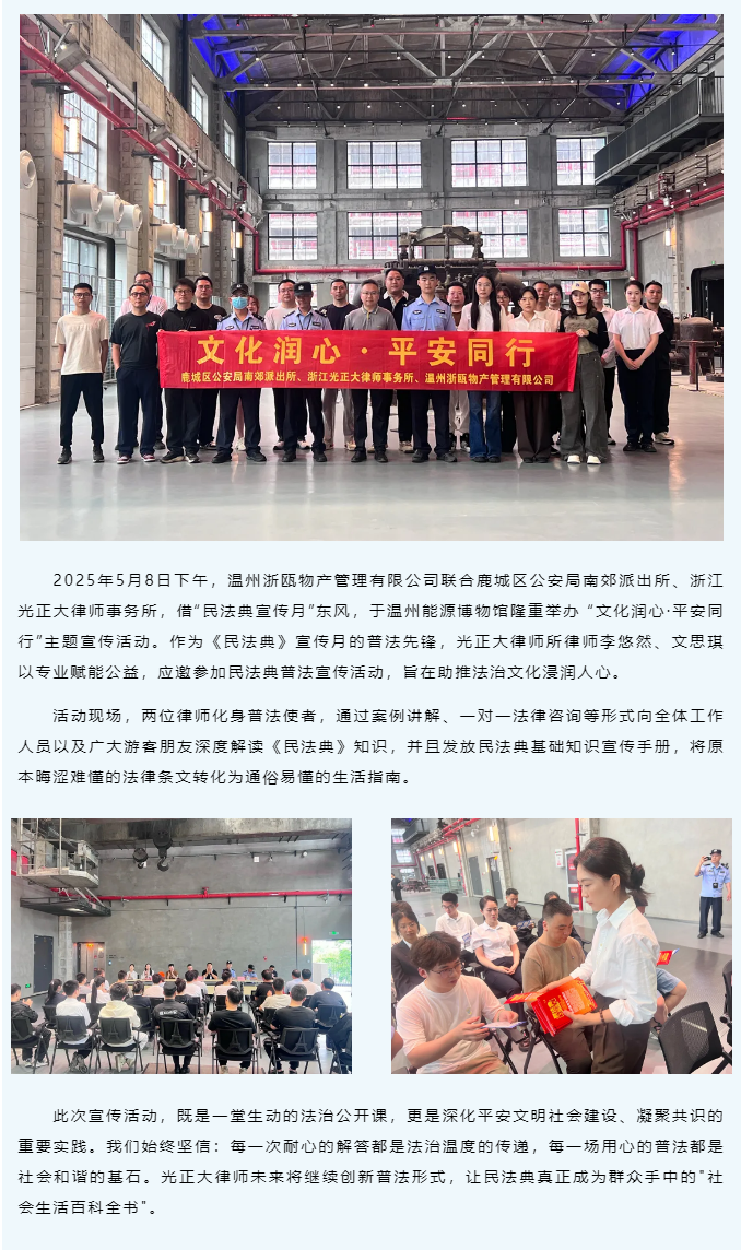 光正大律师所李悠然、文思琪律师受邀参加浙瓯公司“文化润心·平安同行”主题宣传活动