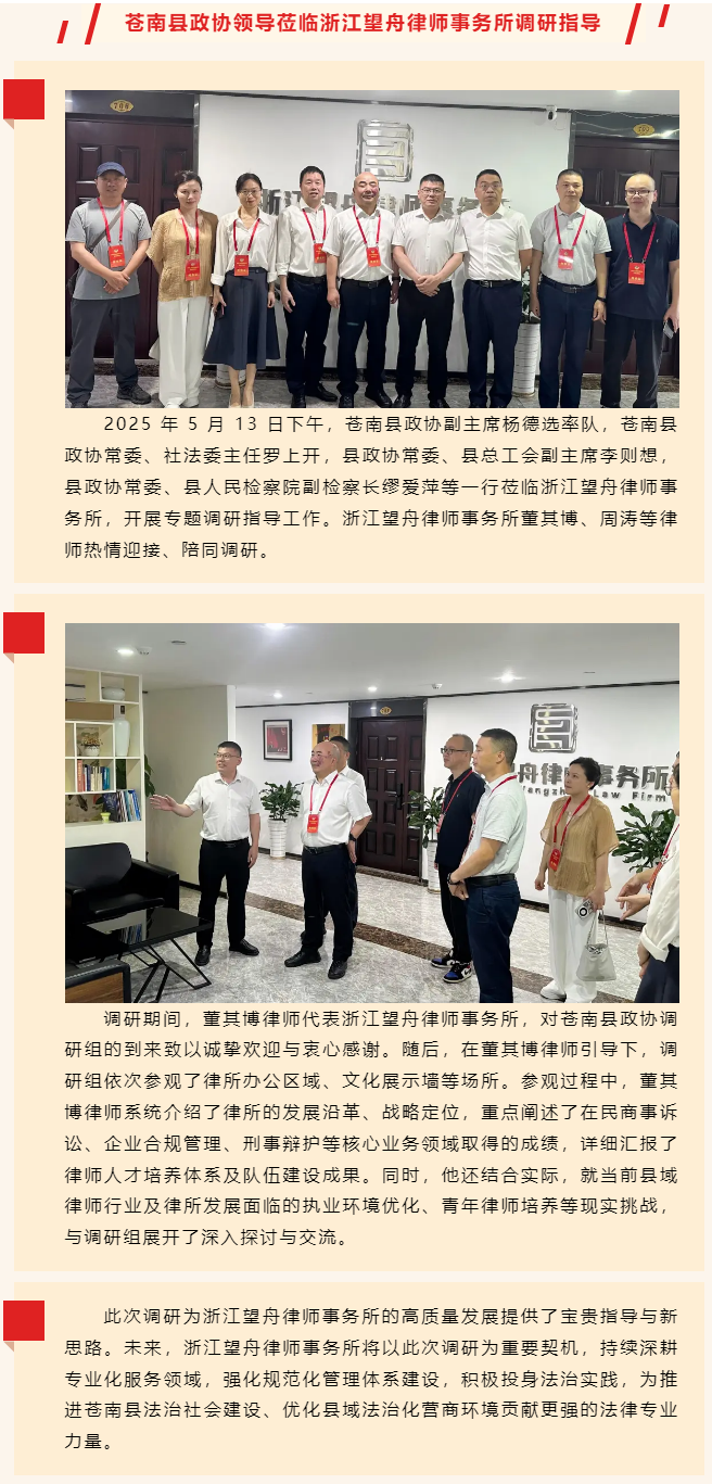苍南县政协领导莅临浙江望舟律师事务所调研指导
