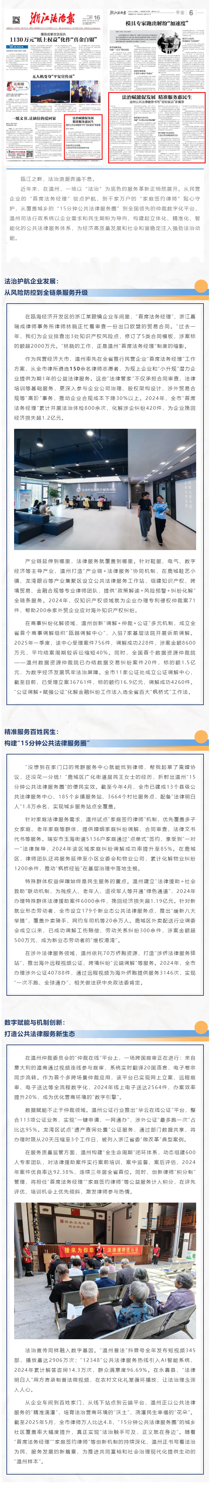 浙江法治报头版 | 法治赋能促发展,精准服务惠民生,温州公共法律服务书写“双轮驱动”新篇章