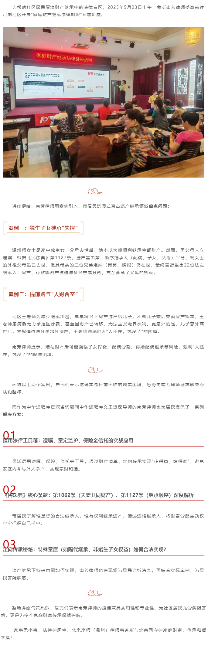 京师所南芳律师受邀为月湖社区居民开展家庭财产继承专题讲座