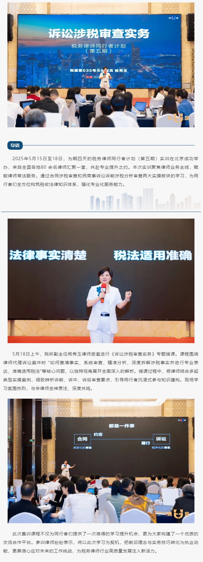 震瓯所杨秀玉律师受邀为第五期税务律师同行者计划授课