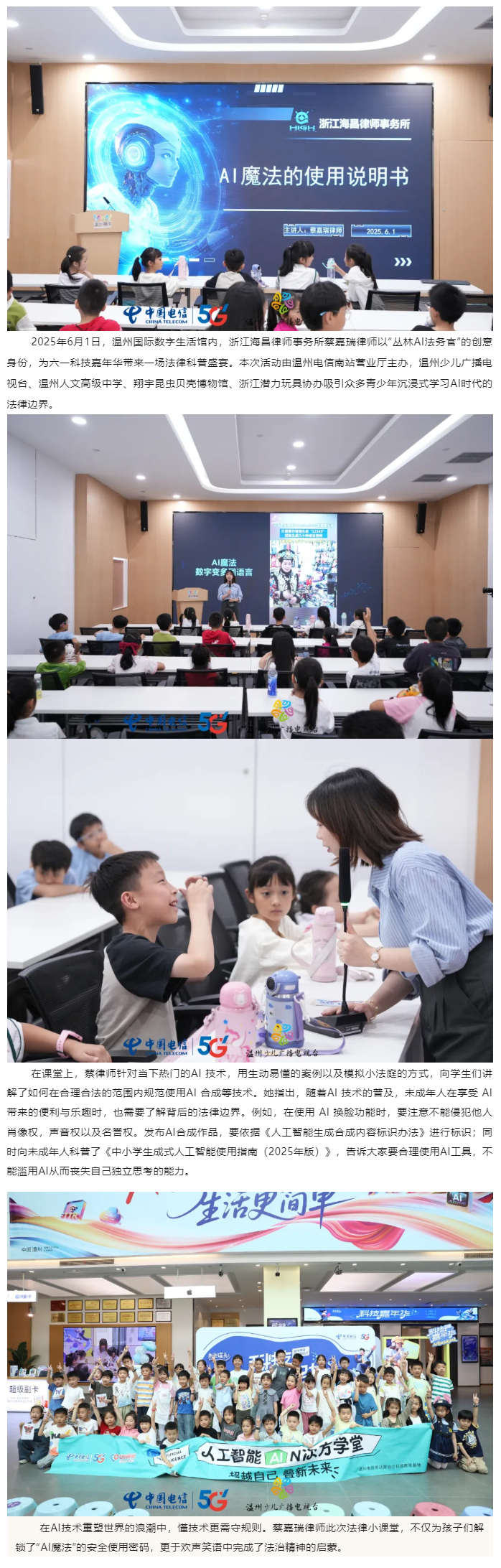 海昌所蔡嘉瑞律师化身“丛林AI法务官” 六一课堂播撒科技法治种子