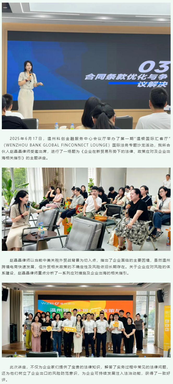 六和温州所赵晶晶律师为温州银行科创金融服务中心开展讲座