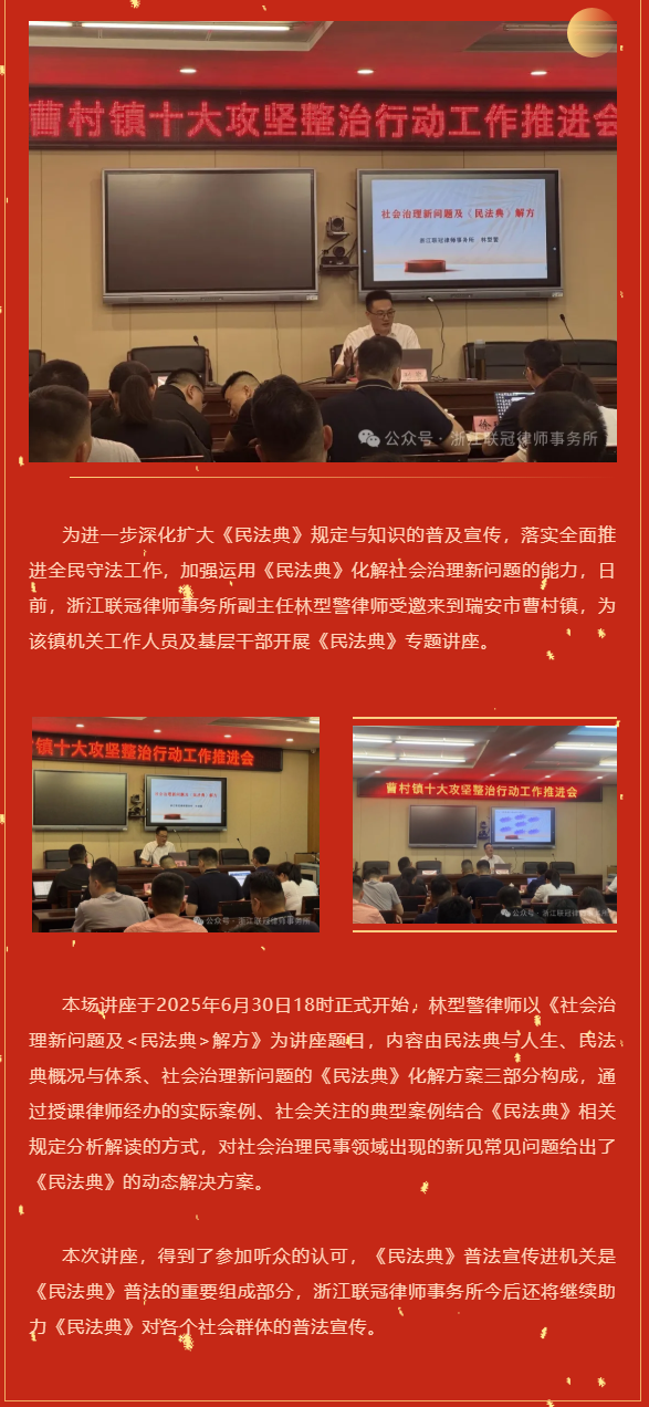 联冠所林型警律师受邀为瑞安市曹村镇机关工作人员开展《民法典》专题讲座