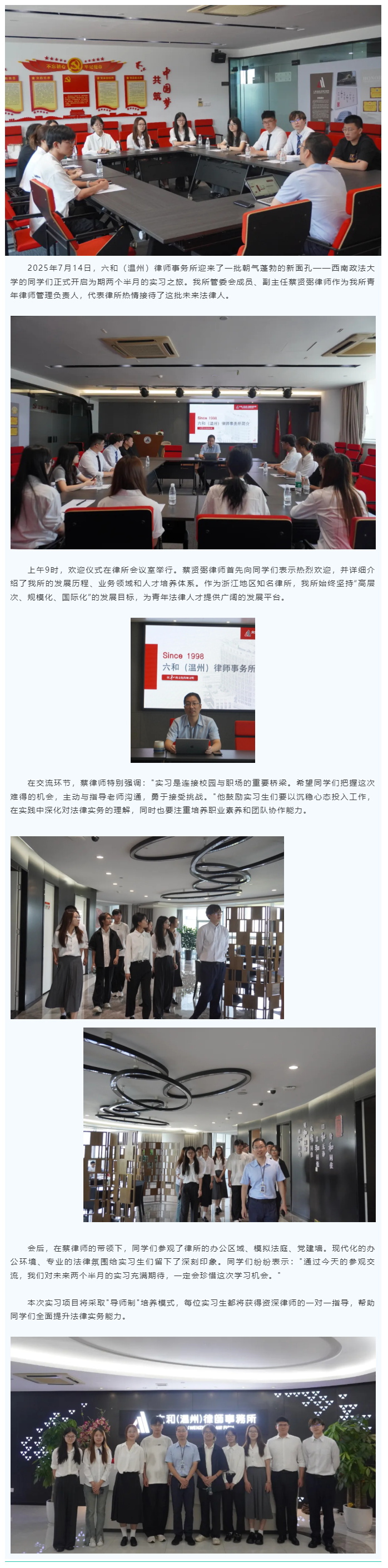 西南政法大学实习生正式开启六和(温州)实习之旅