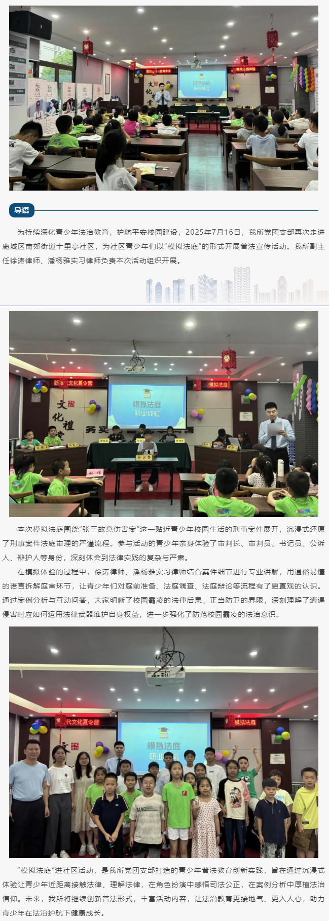 “模拟法庭”再进十里亭社区:震瓯所党团支部为社区青少年筑牢法治根基
