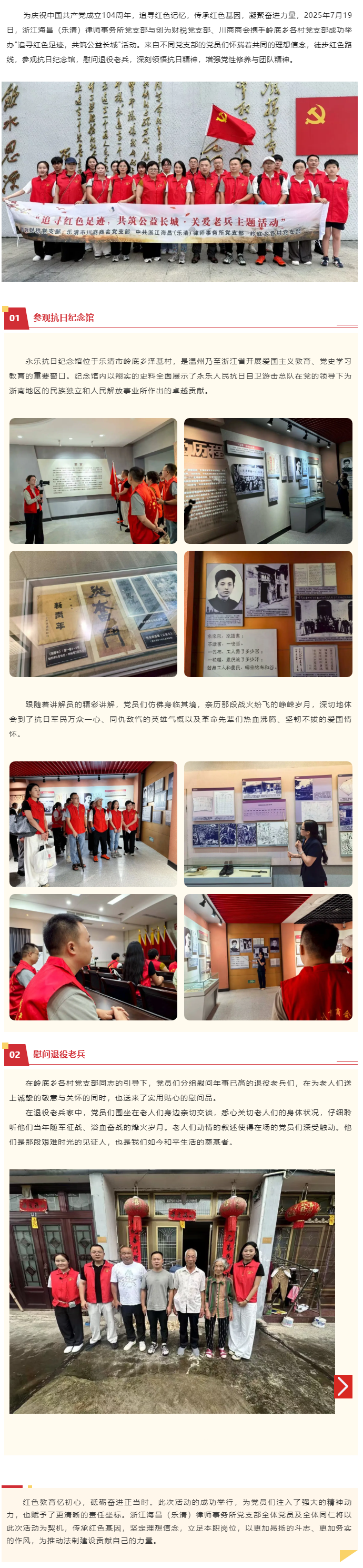 乐清海昌所党支部与创为财税党支部、川商商会联合开展"追寻红色足迹,共筑公益长城"党建活动